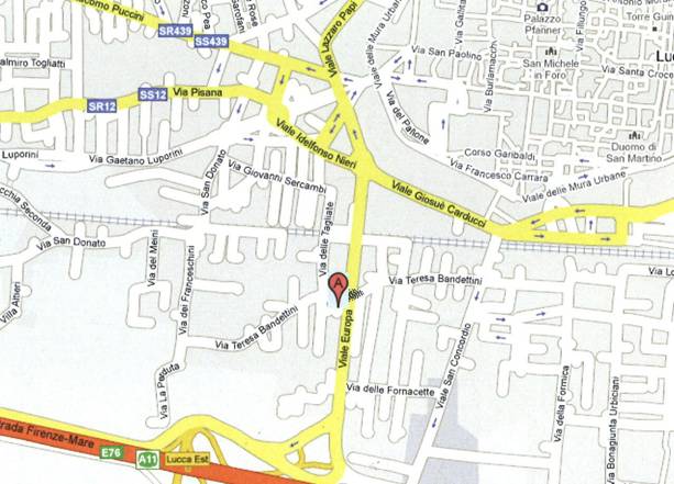 Just outside the motorway, turn left following the direction to the city centre. You will find the hotel on the left in 200mt.